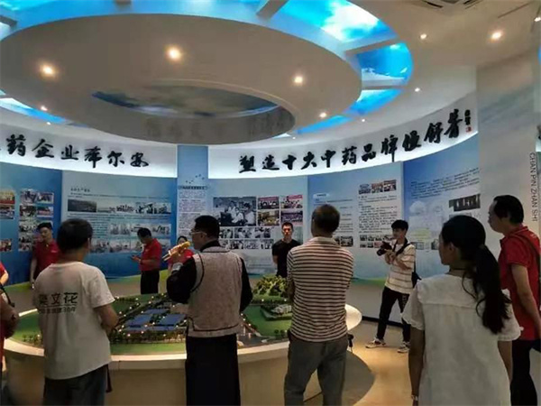 下午4时许,天府可乐一行来到希尔安文化厅。在希尔安企业文化部谭主任的带领和讲解下,了解了希尔安公司从最早的伍舒芳药坊到如今的希尔安一路走来的三百年历程。展厅内逼真的实物模型、丰富的图片资料、充满历史感的设计,让人仿佛置身于老字号药坊中,吸引大家纷纷驻足观看。